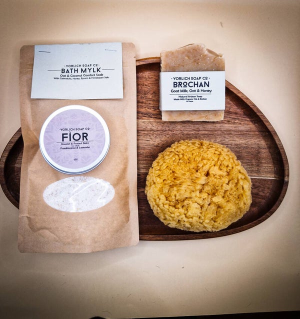 Our formula is crafted using calming colloidal oatmeal, nourishing dried coconut milk and honey powder, mineral rich epsom & pink himalayan salt with a sprinkle of golden calendula petals.